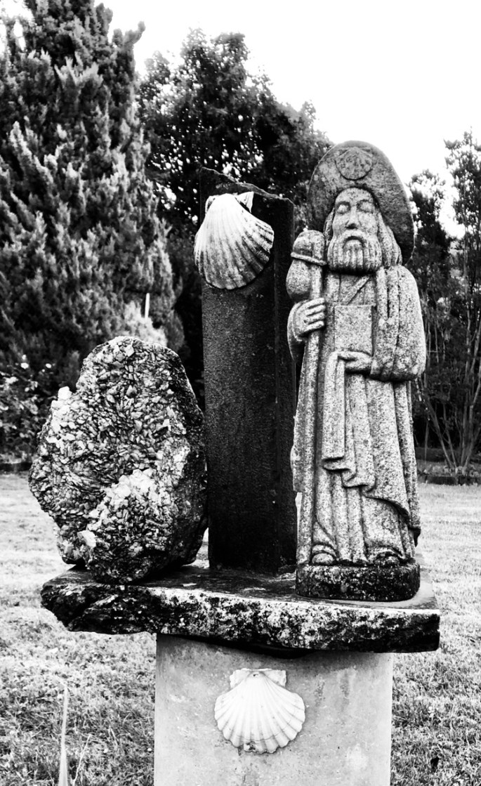 Aún así llegamos a Sarriá sobre las 4:15 de la tarde, era el momento de hacer otro receso, así que no sentamos en una de las terrazas a la vereda del río y nos tomamos dos mostos y una cervecita bien fría con una ración de patatas bravas,(vamos, unas patatas fritas con salsa rojiza no muy picante…), Alimento suficiente como para aguantar 4 km más. Los hicimos muy rápido a pesar de la subidas fuertes que había porque teníamos ganas de llegar. Sin embargo, cuando llegamos…FULL-COMPLETO…Era la primera vez que sucedía pero podía ser previsible habida cuenta del incremento de peregrinos en Sarriá. Había que seguir más de 9 km más cuando ya estábamos muy cansados pero como decía mi padre: ‘El trabajo lo hacen los cansados’…El camino era muy bonito, una vereda entre Robles todo verde y muy bucólico pero en esos momentos, solo te asaltaba el olor a mierda de vaca, no a estiércol no, a mierda de vaca!!!Será que el cansancio nos quita el romanticismo. Llegamos a Ferreirós pasadas las 8:00 de la tarde rezando para que hubiera sitio en el albergue. Tuvimos doblemente suerte, había sitio en el albergue y en el pueblo había fiestas con una orquesta en VIVO a 10 m de nuestra propia cama y así hasta las 3:30 de la madrugada! Fin de etapa espectacular. La mañana iba a ser divertida. Nos duchamos, cenamos y nos metimos en la cama con música a todo meter, la vida es una fiesta!!!